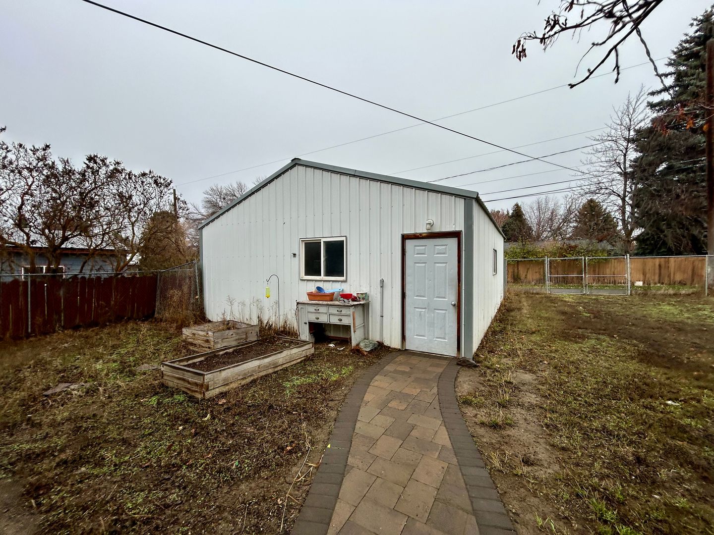 This well-cared-for 4 bedroom, 2 bath home sits on an oversized corner lot directly across from the park. Inside, you'll find a generous layout with an inviting living room and bonus family room. The kitchen shines with quartz countertops and plenty of workspace, while the large laundry/pantry area adds convenience. Washer and dryer hookups only. Step outside to enjoy the fenced yard and serene pergola retreat for relaxing or entertaining. The extra-long 24' x 30' two-car garage includes a shop area with easy alley access. Don't miss this rare find in a prime location.