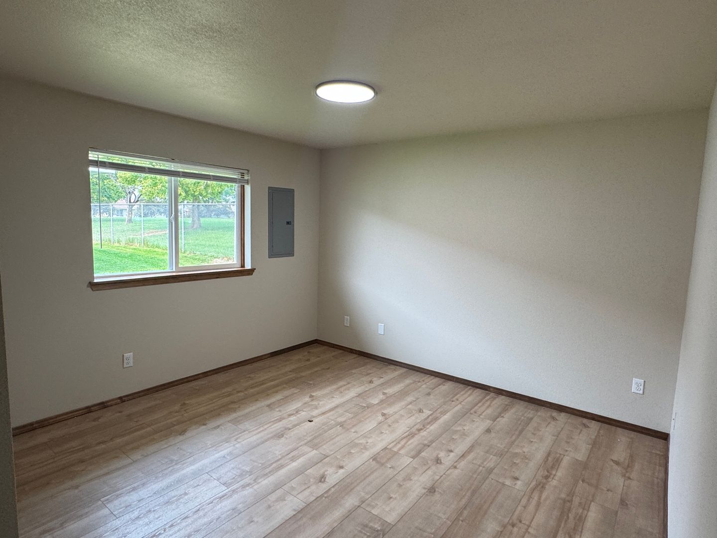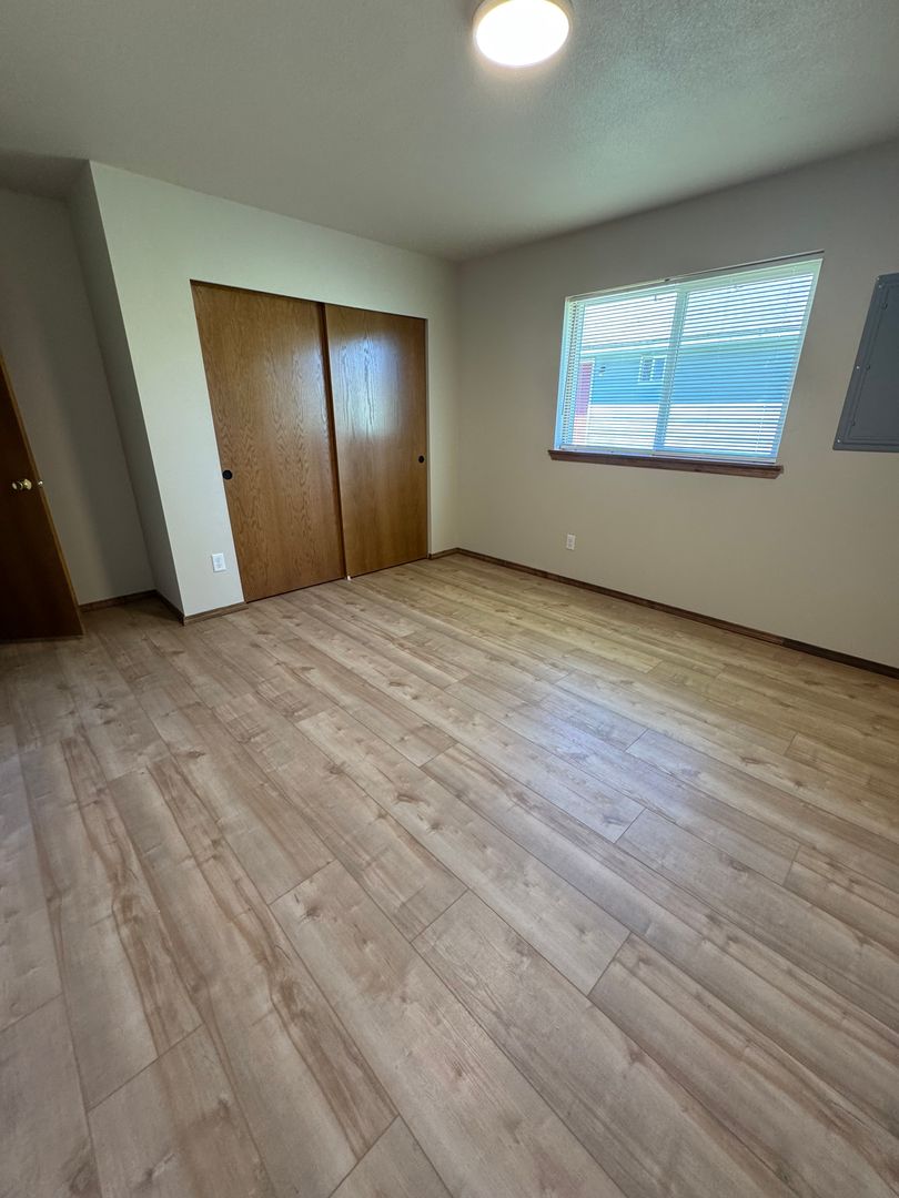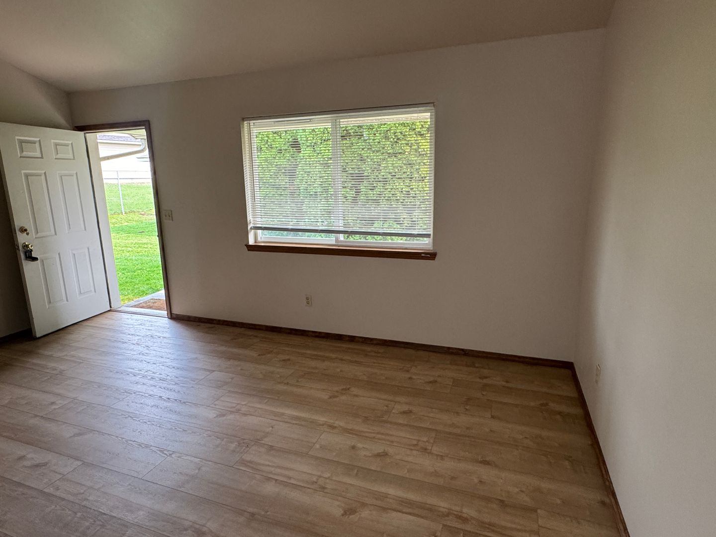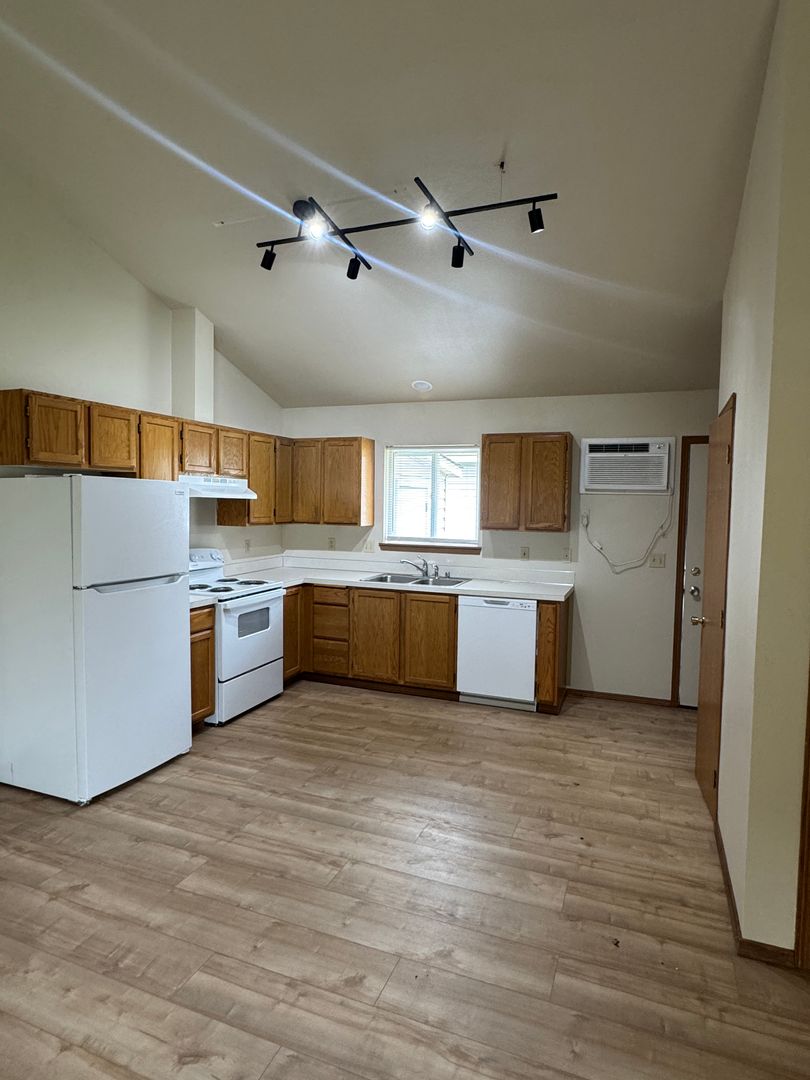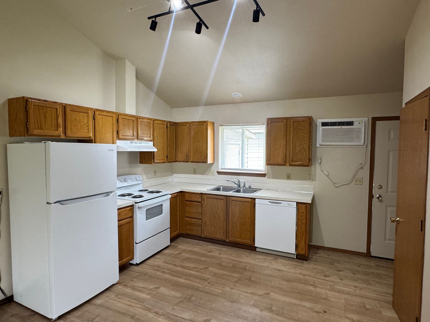 This duplex has a fantastic open floor plan. Cathedral ceilings grace the kitchen and living room area. All three bedrooms are nicely proportioned. Bathroom has dual sinks and a separate toilet/shower area.