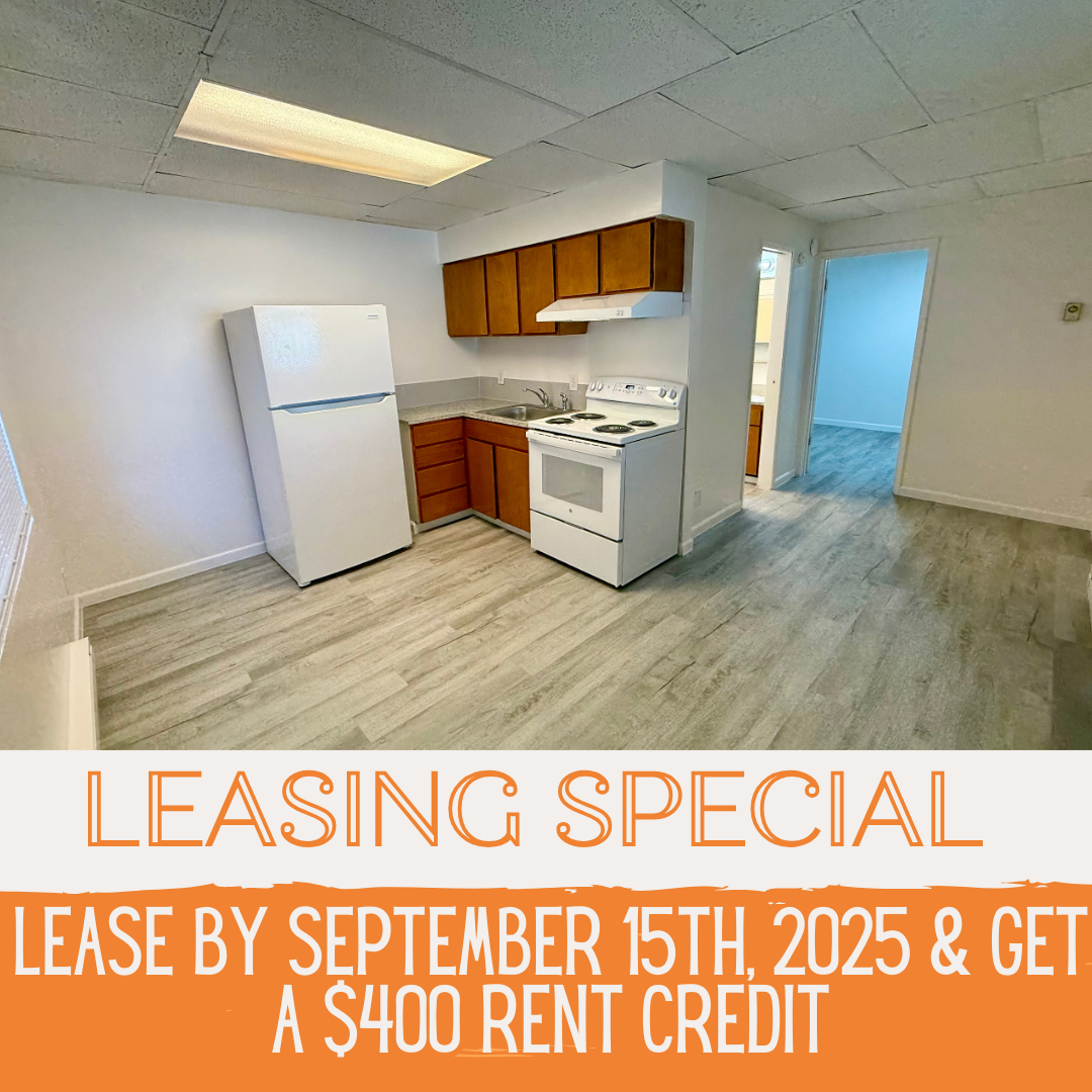 Leasing Special! Lease by September 15th, 2025 and get a $400 rent credit!