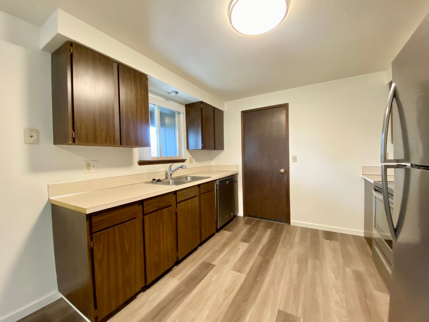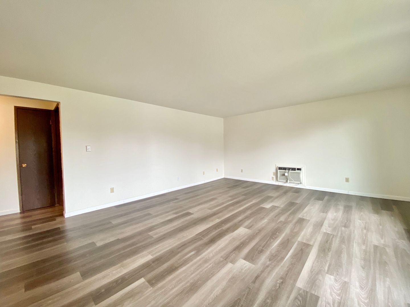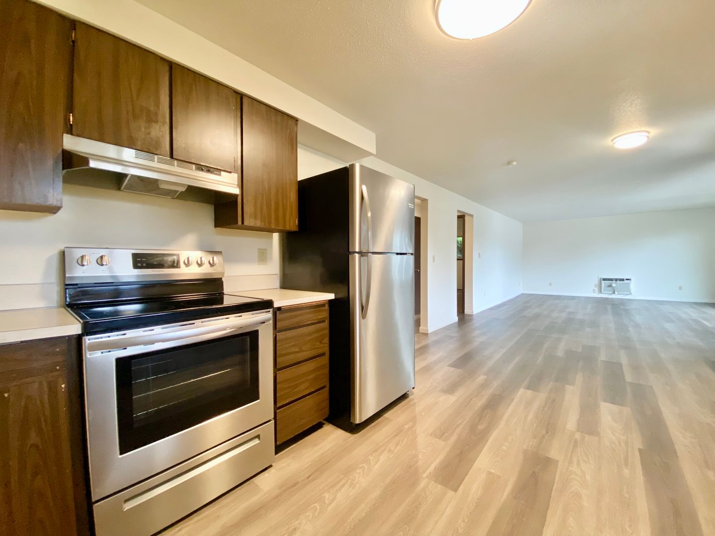 Step through the front door into a spacious living room filled with natural light streaming through a large, picturesque window. The open floor plan makes the home feel bright and inviting, while the kitchen provides generous counter space, perfect for cooking and entertaining. Both bedrooms are well-sized, each featuring large windows and ample closet space to make storage simple.