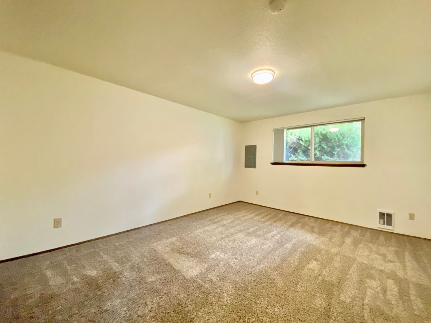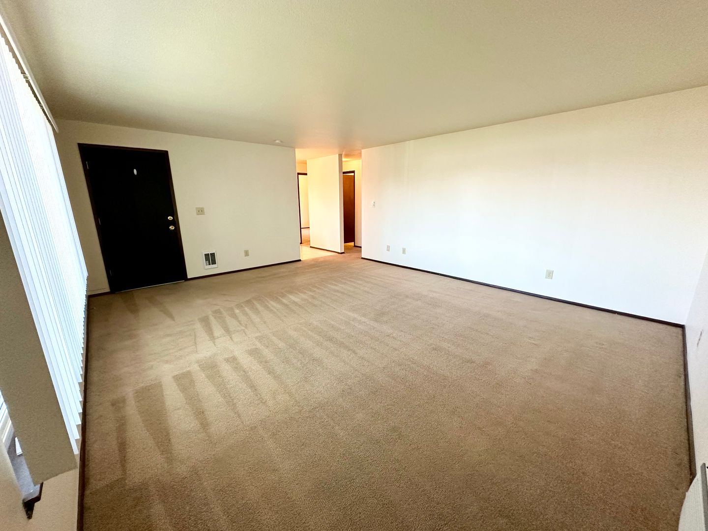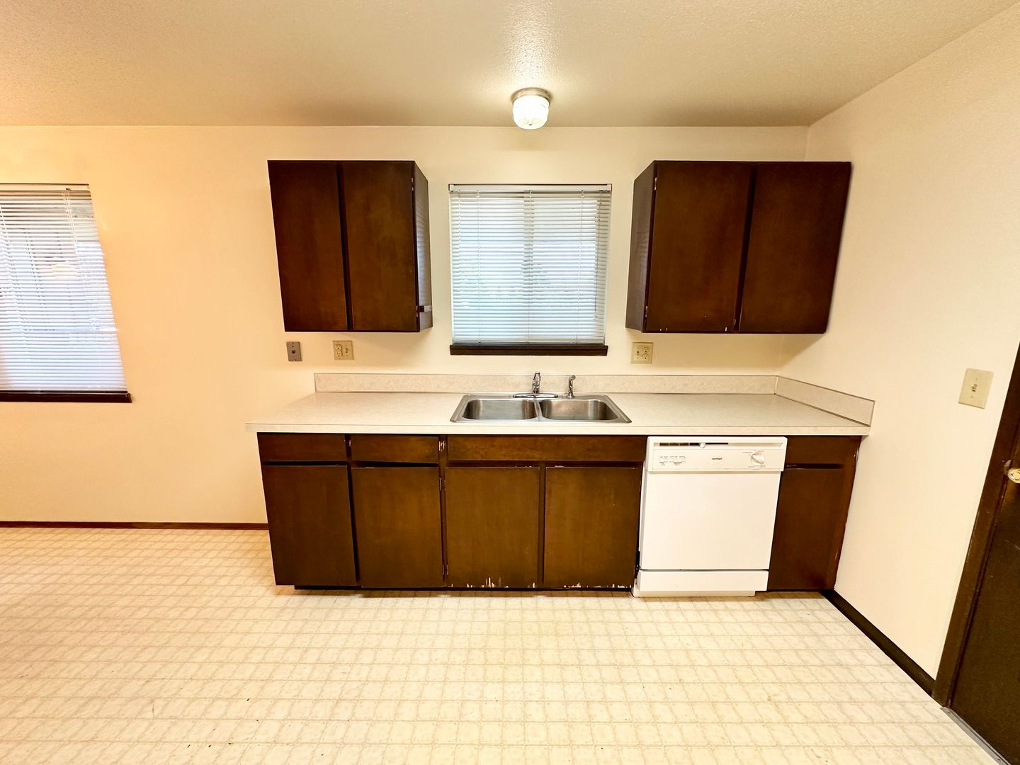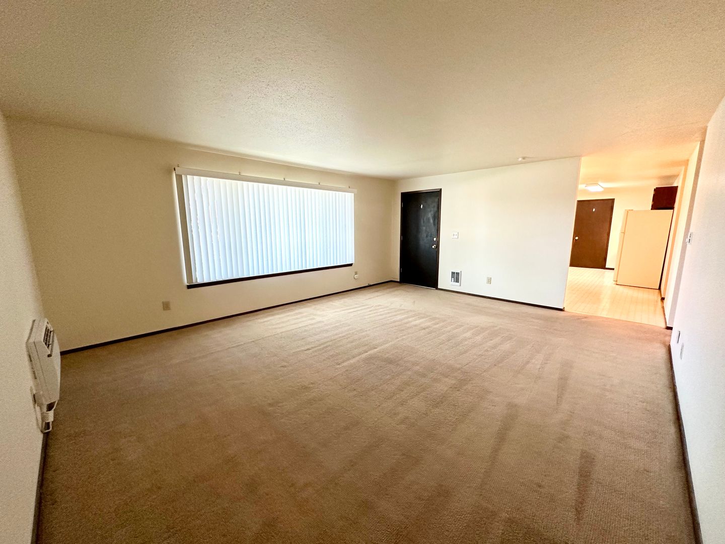 Step through the front door into a spacious living room filled with natural light streaming through a large, picturesque window. The open floor plan makes the home feel bright and inviting, while the kitchen provides generous counter space, perfect for cooking and entertaining. Both bedrooms are well-sized, each featuring large windows and ample closet space to make storage simple.