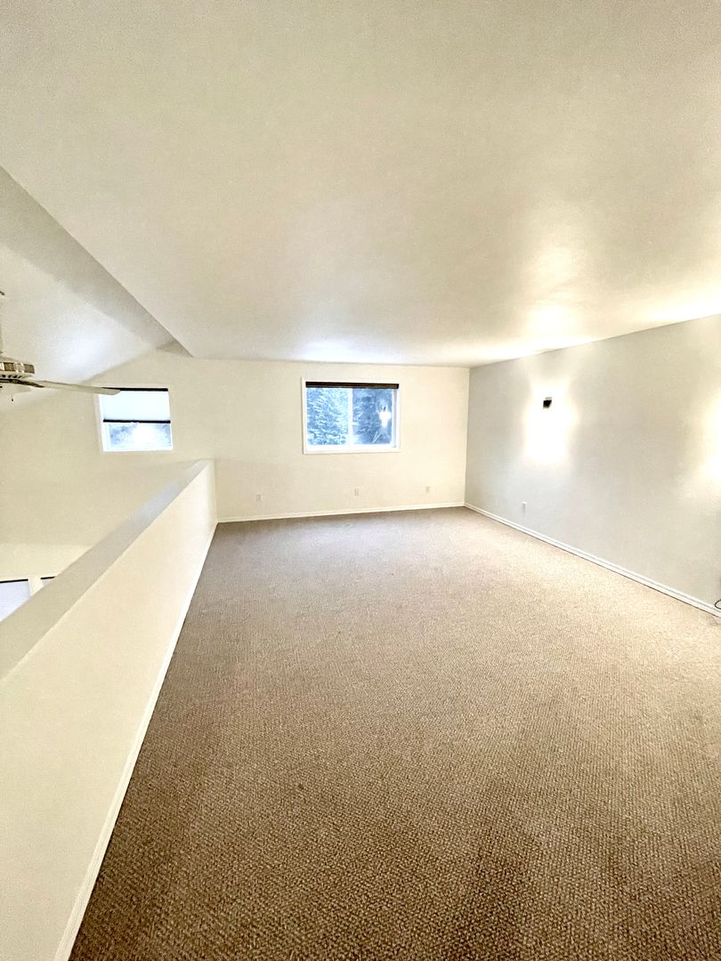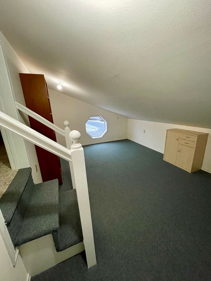 The spacious living area is complemented by a large recreation room overlooking the living room, creating a unique and inviting layout. The kitchen boasts stainless steel appliances, generous cabinet space, and easy flow into the dining area, where an adjacent office provides a quiet space for work or study.