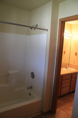 This 3 bedroom 1 bath duplex has an open floor plan with cathedral ceilings in the living room and a spacious kitchen. The double sinks in the split bathroom along with laundry and soaking tub/shower offers dual usability. Attached locked storage space off the patio and lush green grass surrounding the home.