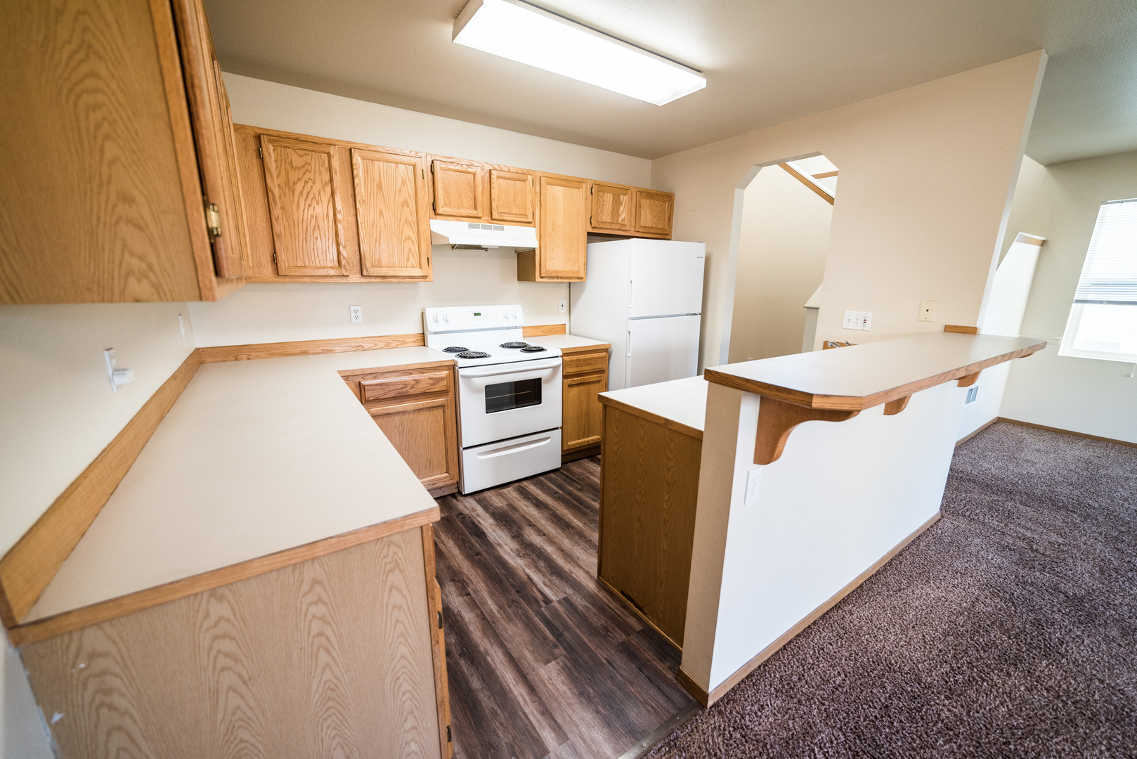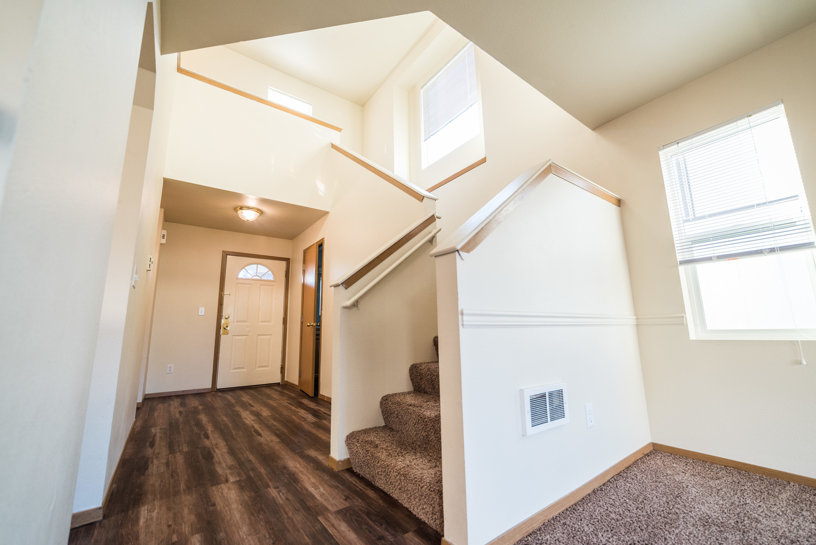 This 3 bedroom 2.5 bath home is one of the most desirable floor plans available in our townhouses. The 3 bedrooms are located on the second floor. The primary bedroom has its own bathroom and double closet. The two additional bedrooms have a large, shared, bathroom in the hallway and nice sized closets. This home has a open balcony off the second level that looks down to the living room and kitchen with eating bar. The laundry and half bath are located on the main level along with the single car garage. Water, Sewer, Garbage, and Lawn Care included in the rent. This property is cat friendly, no dogs!