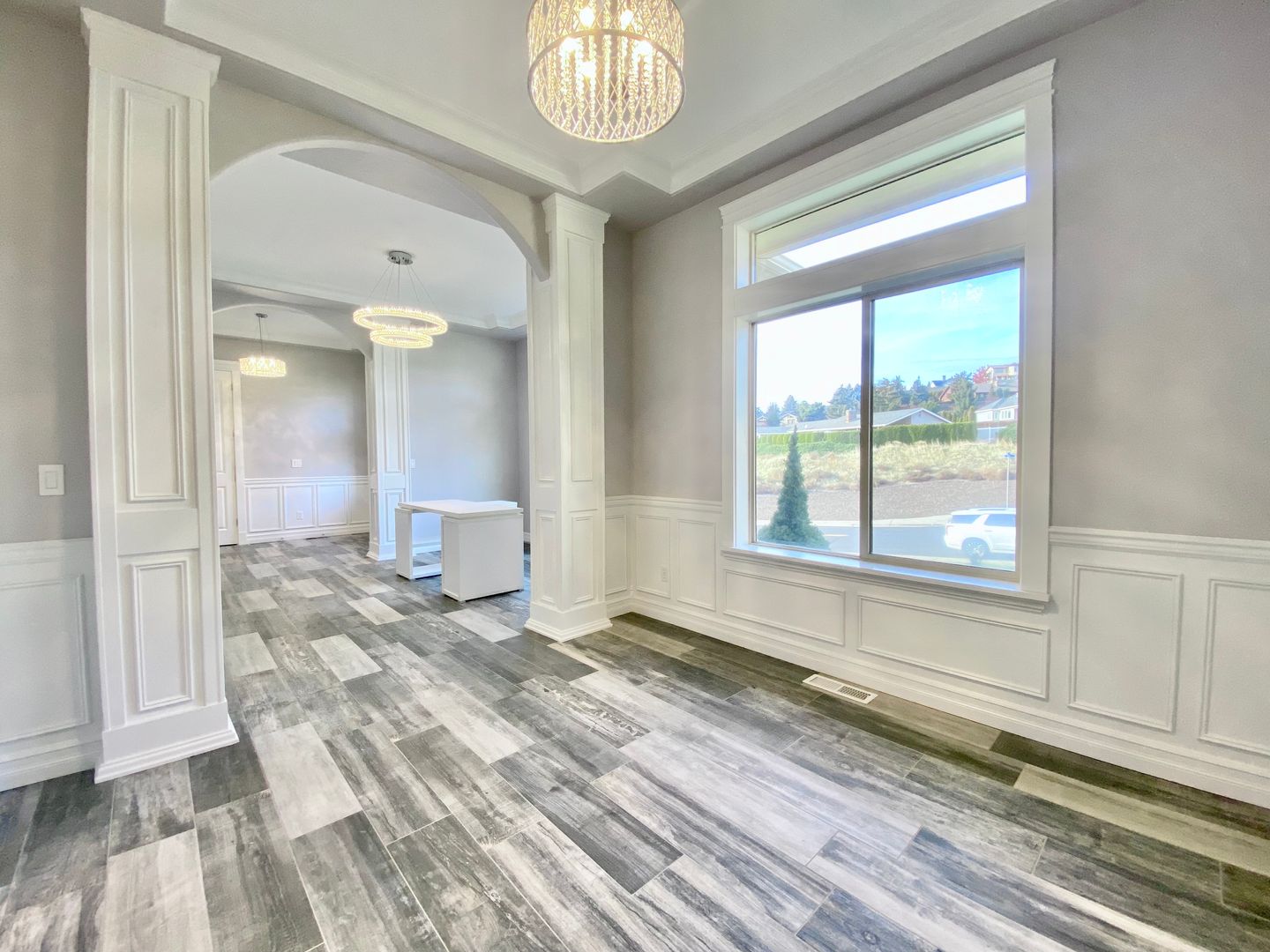 Outdoors, enjoy a beautifully landscaped yard with a covered patio, built-in firepit, and TV hookup—a true year-round entertainment space. An oversized 3-car garage provides ample room for parking, storage, and gear.