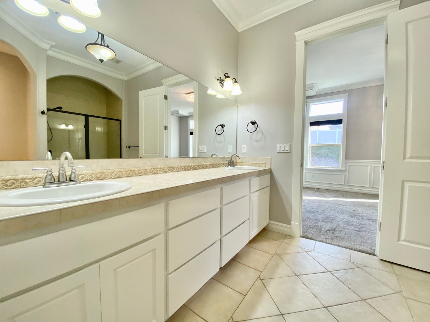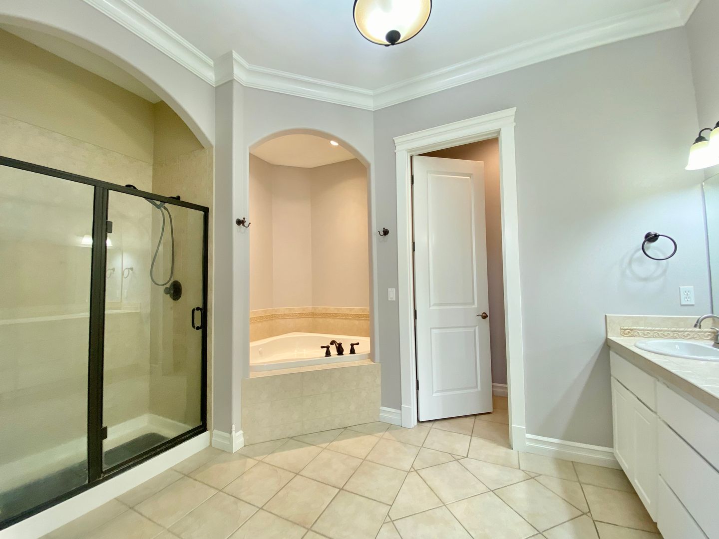 Your private primary suite is a true retreat, featuring patio access, a relaxing soaking tub, tiled walk-in shower, dual sinks, and a custom walk-in closet big enough to make you feel like a minimalist (even if you’re not).