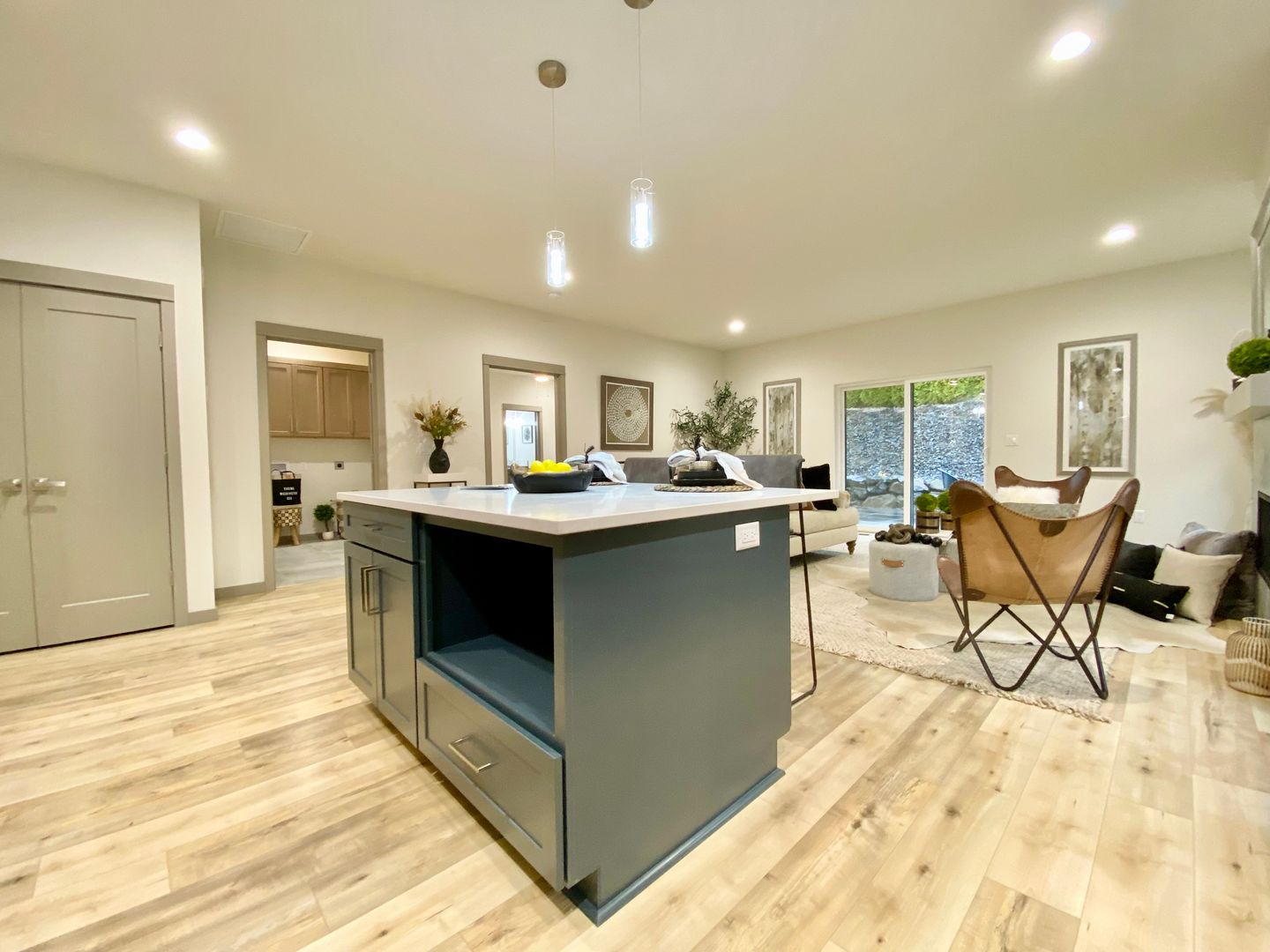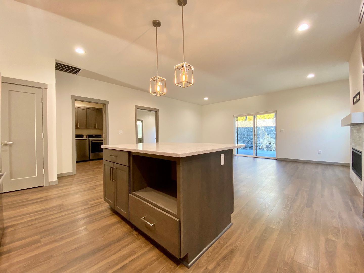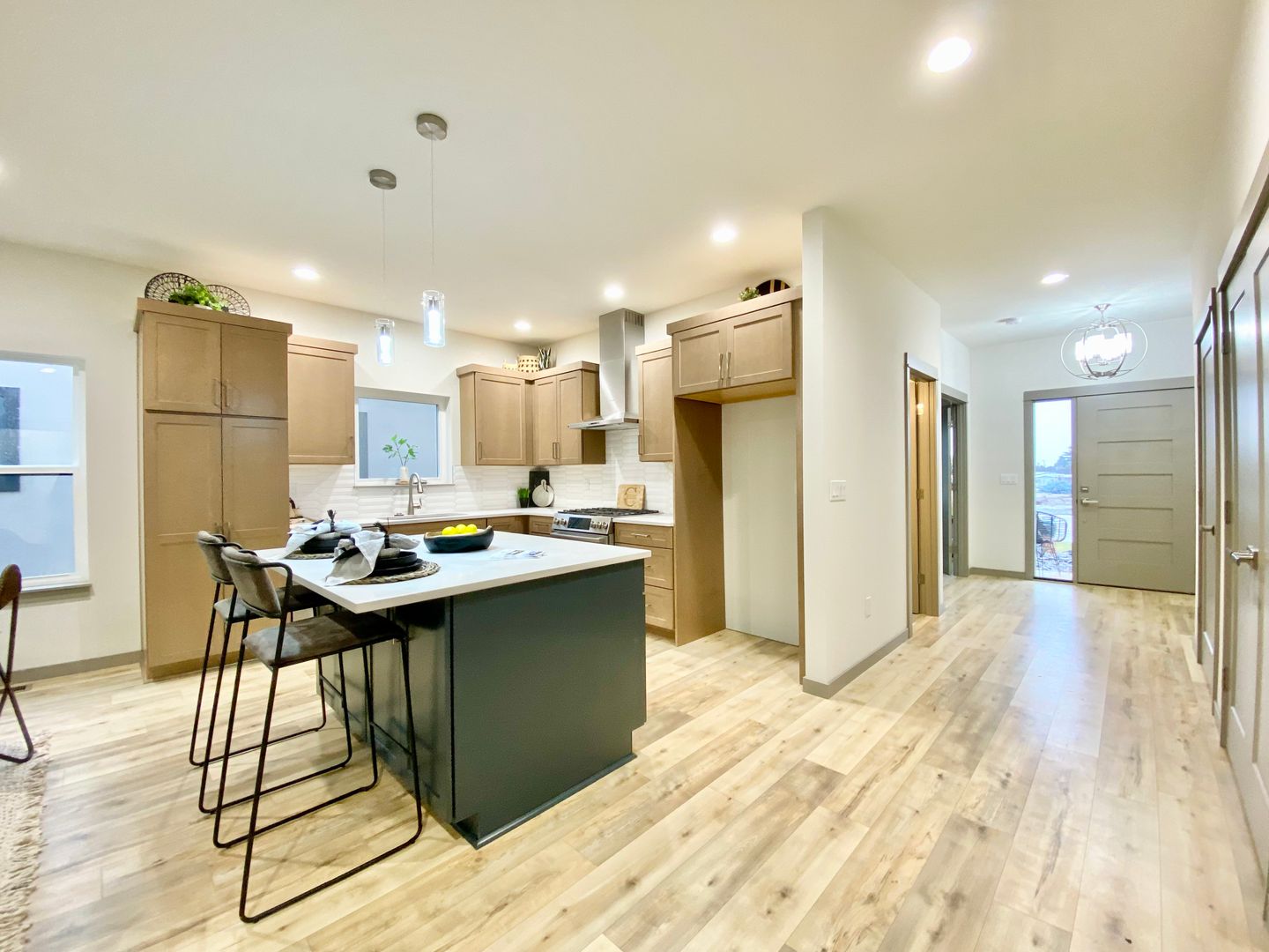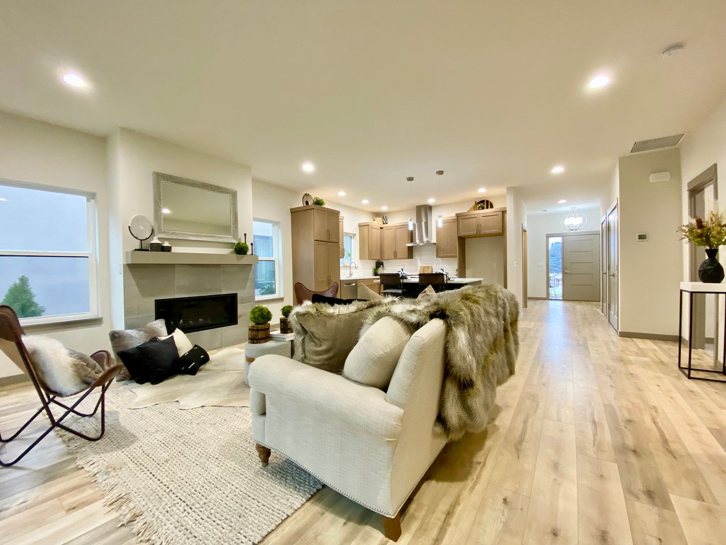 Within the gates of Yakima's finest community, step into luxury in this custom-built contemporary home. Stunning design and finishes throughout. Carefully crafted with tall ceilings and luxury flooring, incredible windows surround the south side of the home to take in the outdoor views. The open concept living room is an ideal gathering space just off the kitchen . The large center island makes a dramatic statement in this open kitchen with slab countertops and high-end appliances.