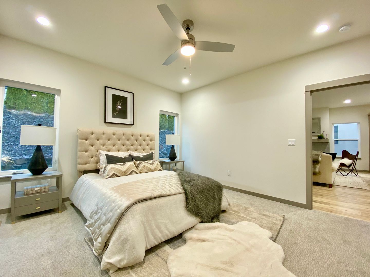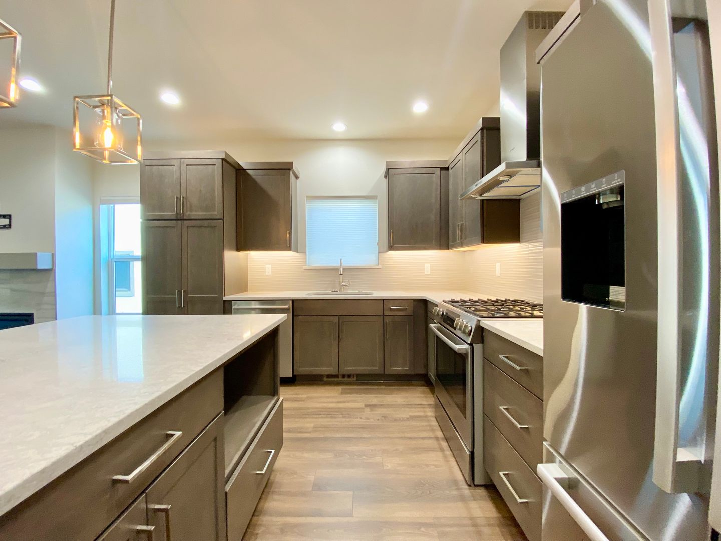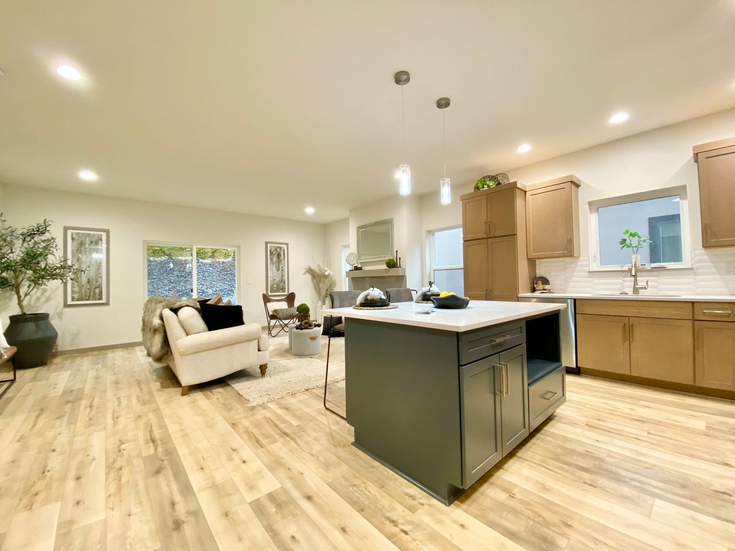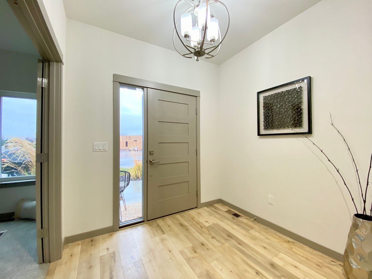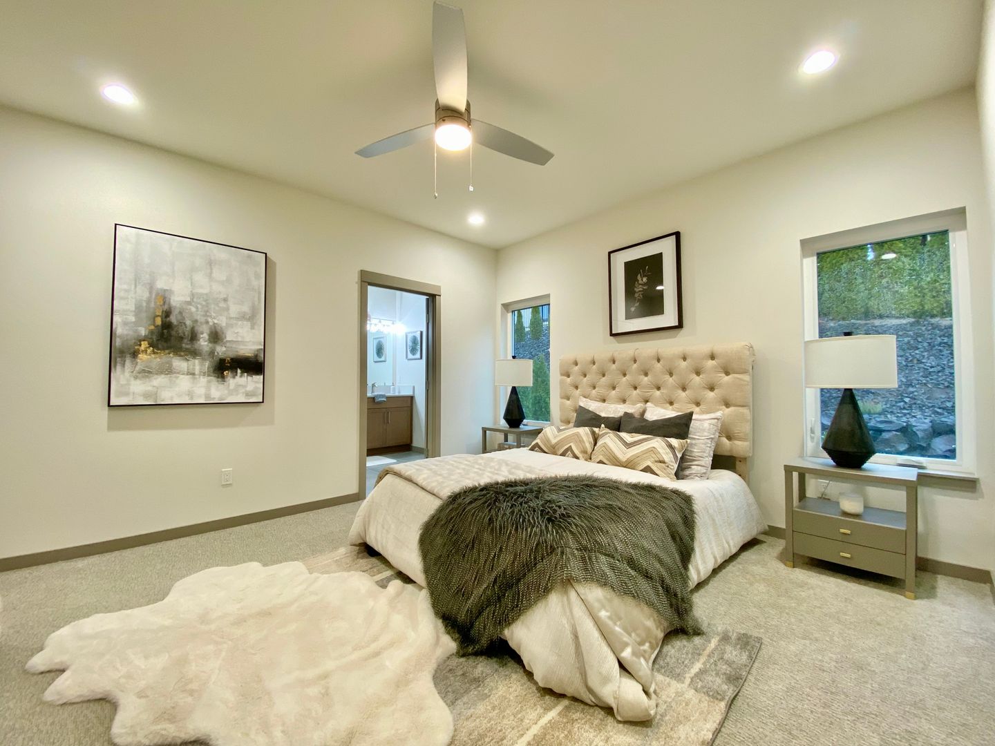 Within the gates of Yakima's finest community, step into luxury in this custom-built contemporary home. Stunning design and finishes throughout. Carefully crafted with tall ceilings and luxury flooring, incredible windows surround the south side of the home to take in the outdoor views. The open concept living room is an ideal gathering space just off the kitchen . The large center island makes a dramatic statement in this open kitchen with slab countertops and high-end appliances.
