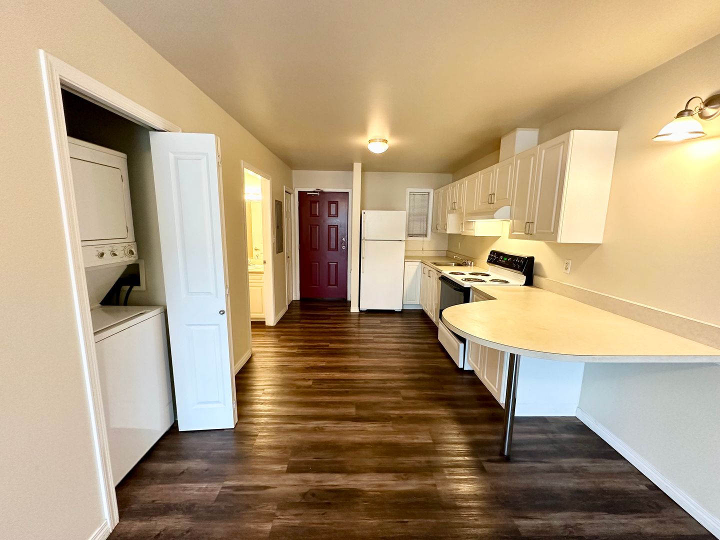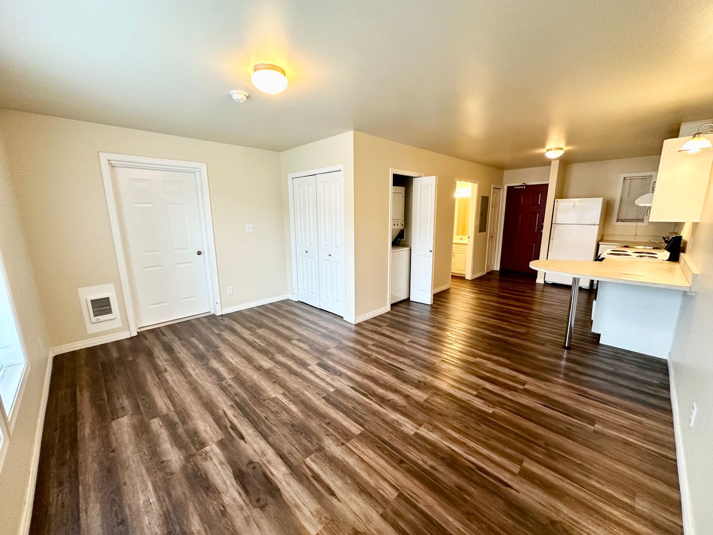 Come check out this newly renovated studio for rent! This second floor apartment comes with washer and dryer in the unit. Complete kitchen with dishwasher. Off street parking is available. Door at back of apartment leads into the commercial space next door and will be locked off from both sides. Water, Sewer, Garbage is included in rent.