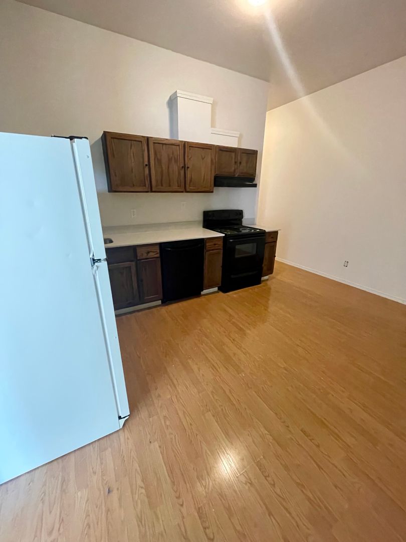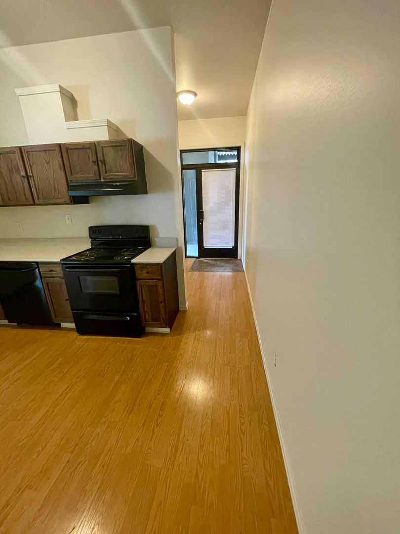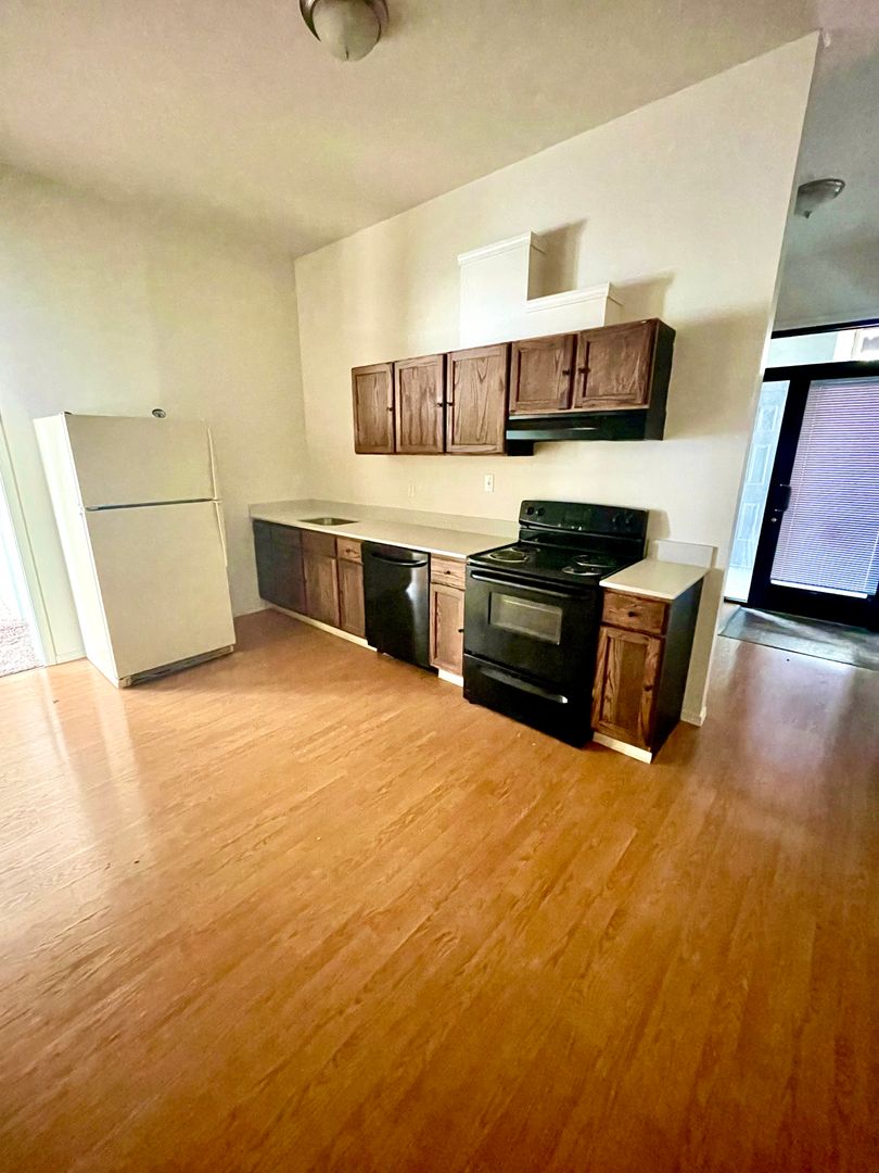 Inside, you'll find a fully equipped kitchen with a refrigerator, oven, microwave, and dishwasher—perfect for anyone who enjoys cooking or simply wants the ease of modern appliances. The open living area provides plenty of space to relax or entertain. One of the standout features is the in-unit washer and dryer, giving you the convenience of laundry at home. You'll also enjoy off-street parking, making it easy to come and go without the hassle of finding a spot.