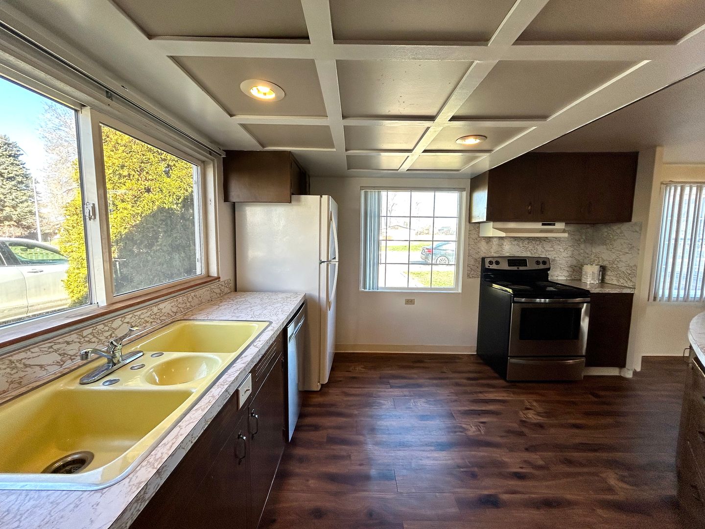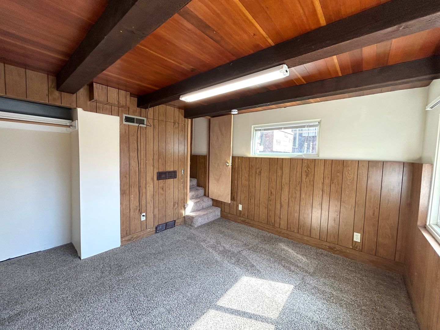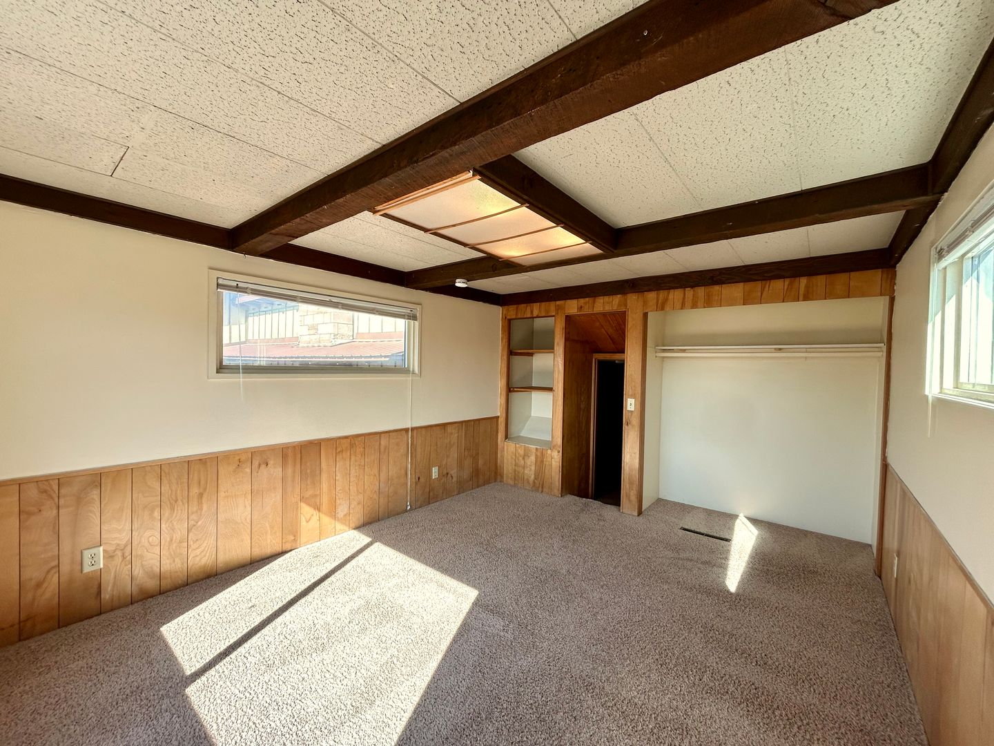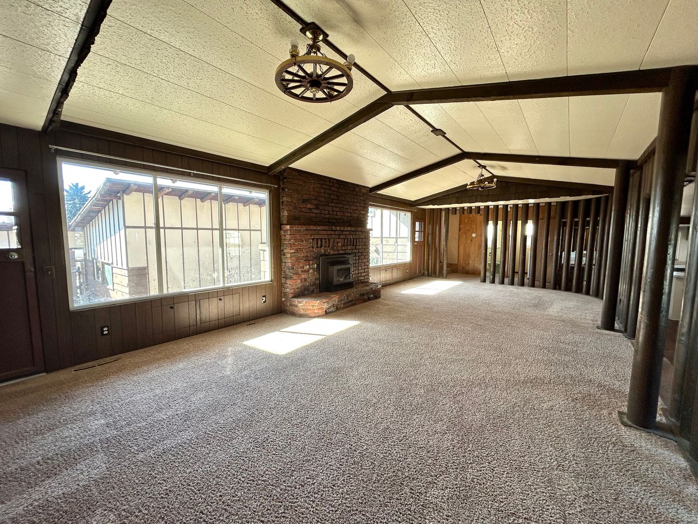 This unique 5 bedroom, 2 bathroom home is centrally located on a nicely appointed lot with a fenced yard. This home combines modern convenience with unique charm. The spacious living room features high ceilings and a decorative wood stove. The curved cabinetry in the kitchen flows seamlessly with the home, forming the ideal backdrop for gatherings. Washer and dryer included.